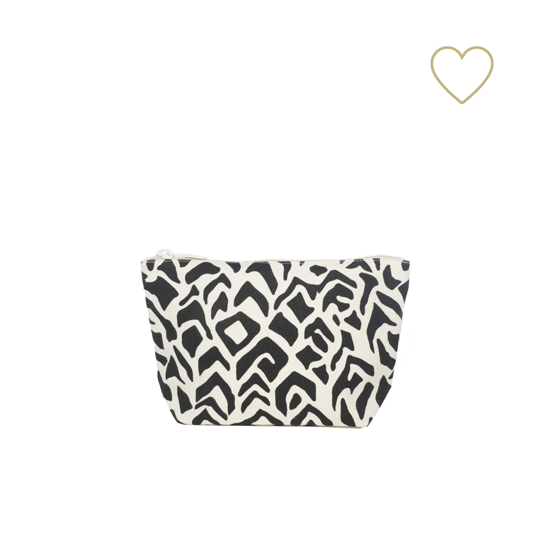 Dit leuke make-up tasje heeft een mooie zwart-wit print en is gemaakt van heel sterk materiaal, namelijk van biokatoenen canvas. Al jouw make-up items passen hier fijn in. De afmetingen van het tasje zijn: 18 cm breed, 12 cm hoog en 7 cm diep.Ingrediënten